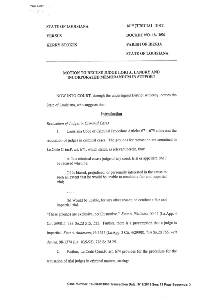 Motion To Recuse Judge Lori Landry and Incorporated Memorandum in